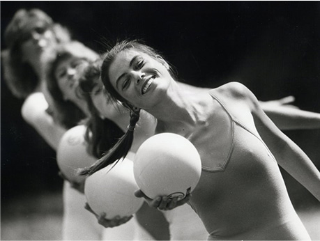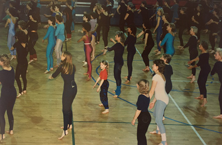 It is a ‘whole body’ fitness method. Using small hand apparatus like hoops and balls, to give focus (and distraction) and extend the movement, it is ‘flowing’ movement which increases energy and builds stamina, improves strength and flexibility and tones the muscles, and through the use of music and percussion increases rhythmic awareness.